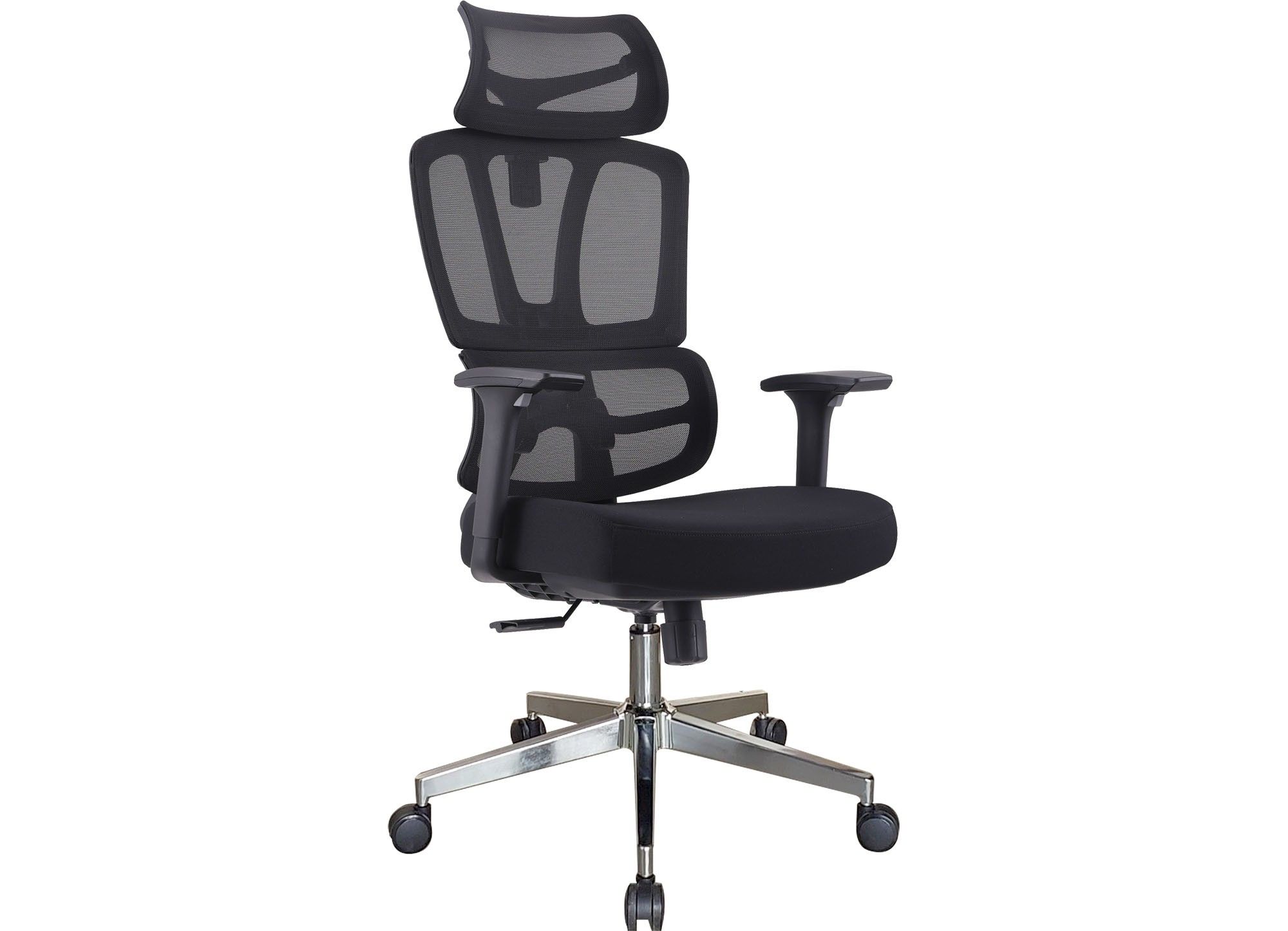 Ghế công thái học hỗ trợ cột sống, đệm mút đúc bọc vải mềm mại, êm ái, khung tựa nhựa bọc vải lưới có thể ngả hãm tại 3 vị trí, tựa đầu có thể điều chỉnh cao - thấp. Tay ghế 3D có tăng chỉnh chiều cao. Chân thép mạ Cr-Ni. Hàng nhập khẩu.