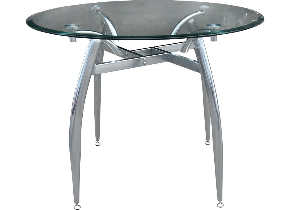 Bàn ăn khung thép mạ, mặt kính tròn, bàn có ngăn bàn gỗ sơn PU