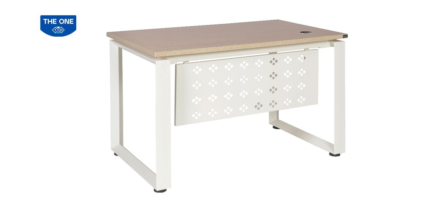 Bàn làm việc khung thép tam giác mặt gỗ Melamine. Có yếm tôn trang trí.