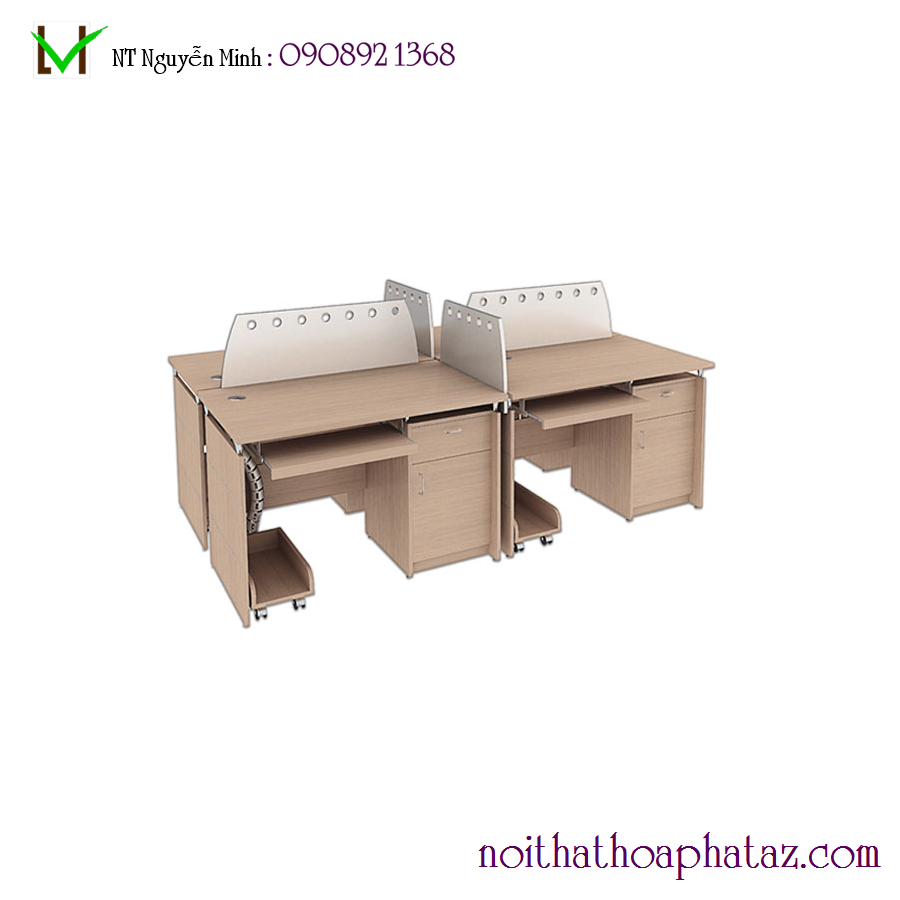- Module bàn làm việc 4 chỗ mặt chữ nhật phân tách bằng vách ngăn