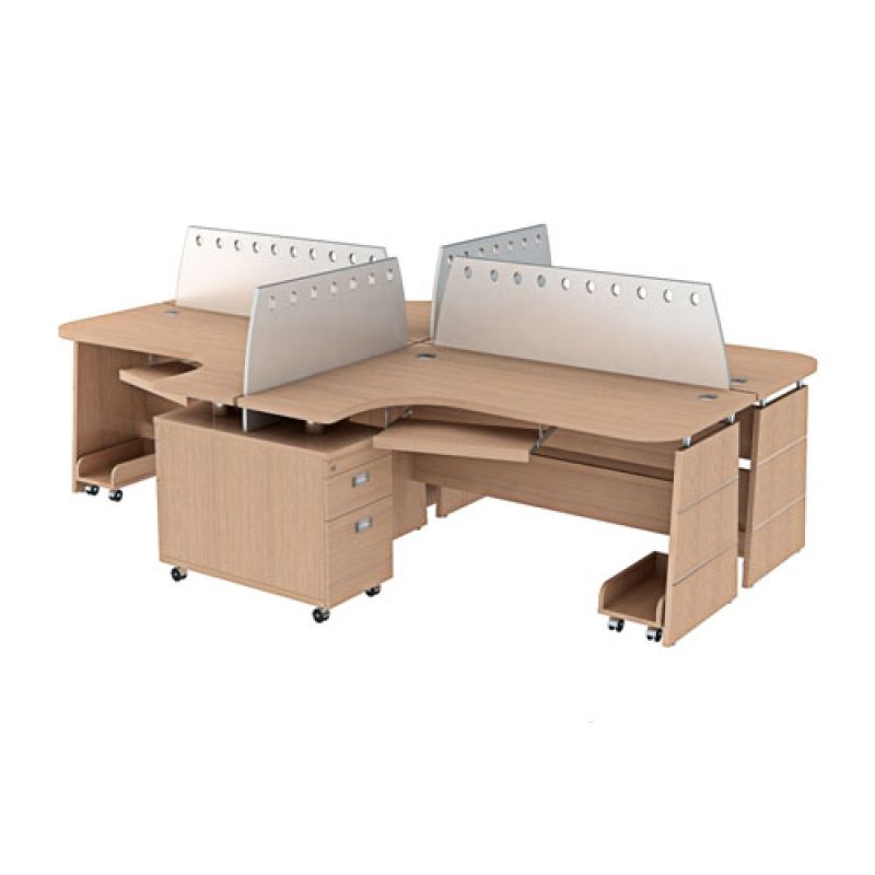 - Module bàn làm việc 4 chỗ mặt lượn cong