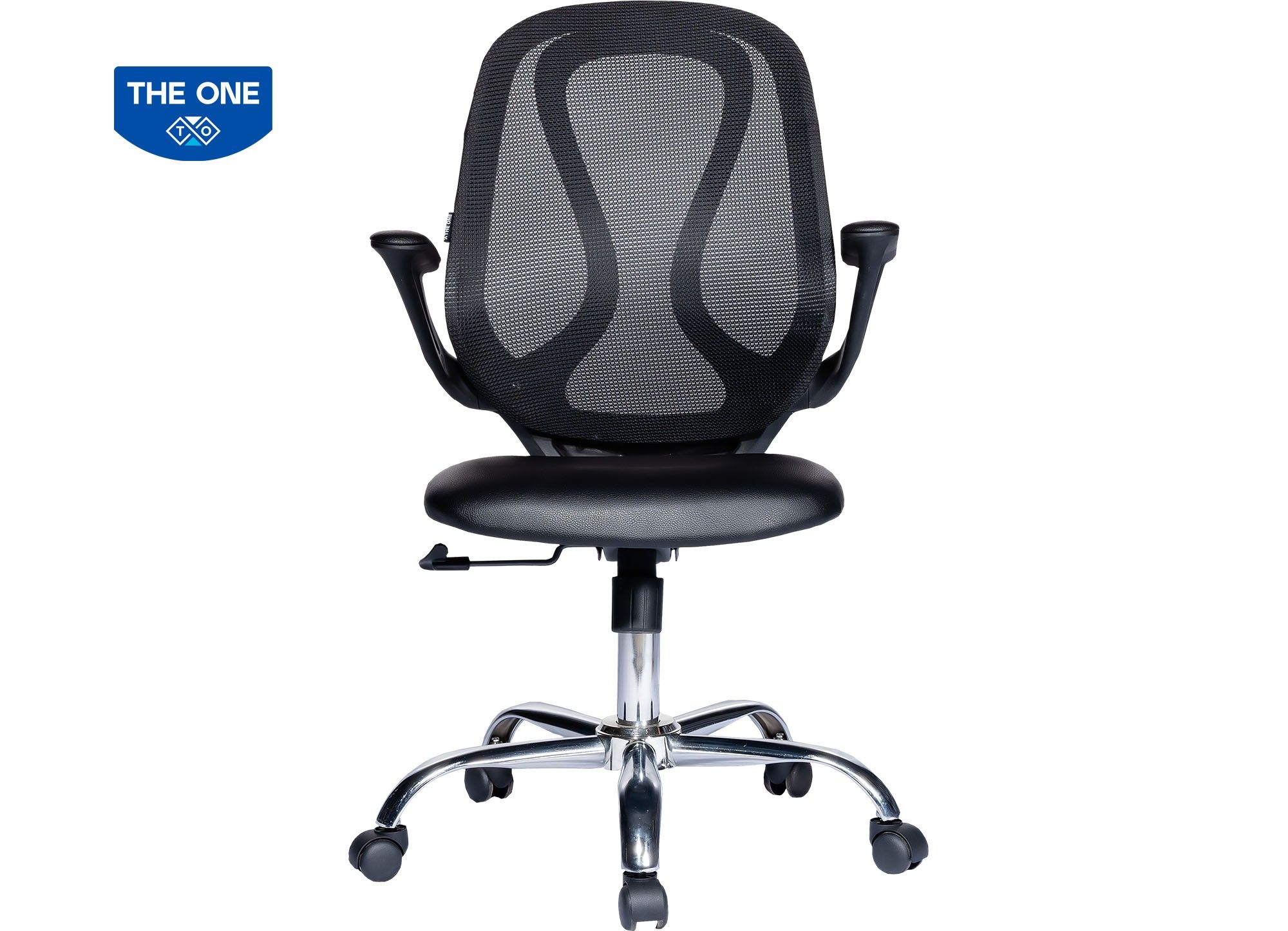Ghế lưới nhân viên lưng trung, đệm bọc PVC, tựa nhựa bọc vải lưới, tay bọc PVC, phần tay có thể gấp lên - xuống theo nhu cầu sử dụng.