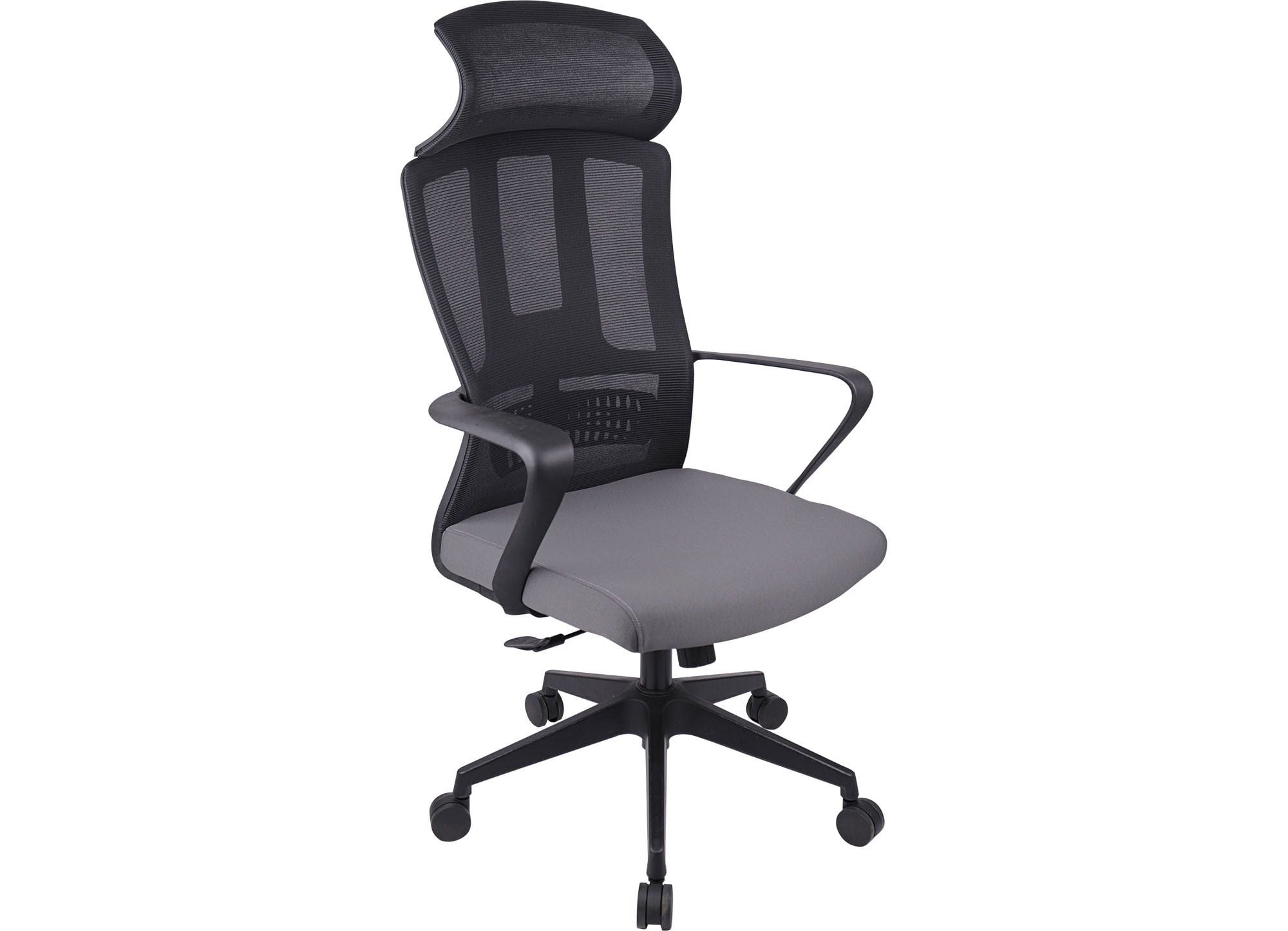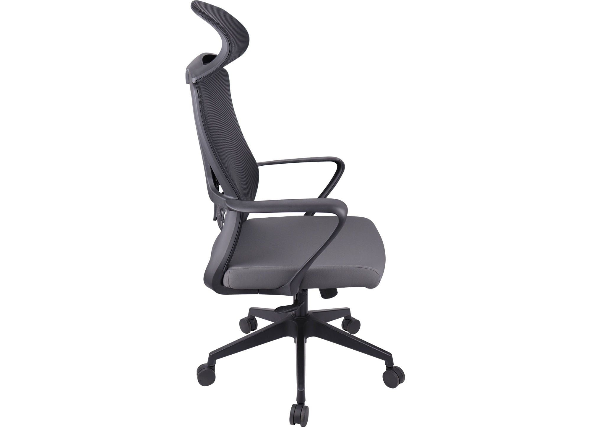 Ghế lưới lãnh đạo cao cấp, đệm mút bọc vải, tựa nhựa bọc vải lưới, tay ghế bằng nhựa cố định đệm tựa. Ghế có tựa đầu cố định.