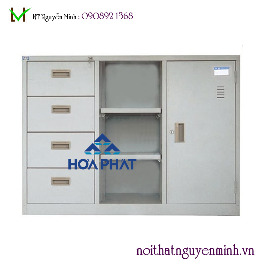 - Tủ sắt sơn tĩnh điện 3 khoang : khoang cánh sắt mở bên trong có 2 đợt di động , khoang ở giữa có 2 đợt di động , khoang 4 ngăn kéo sử dụng chung 1 thanh khóa dàn
